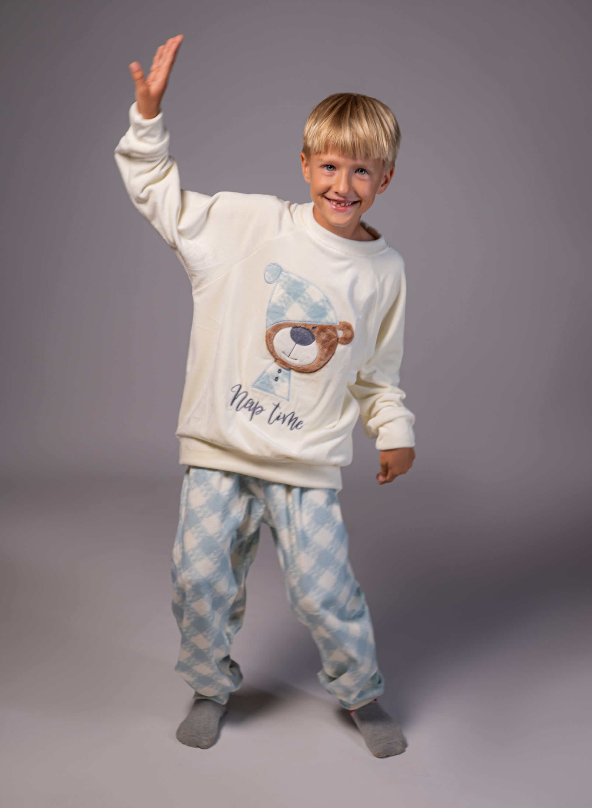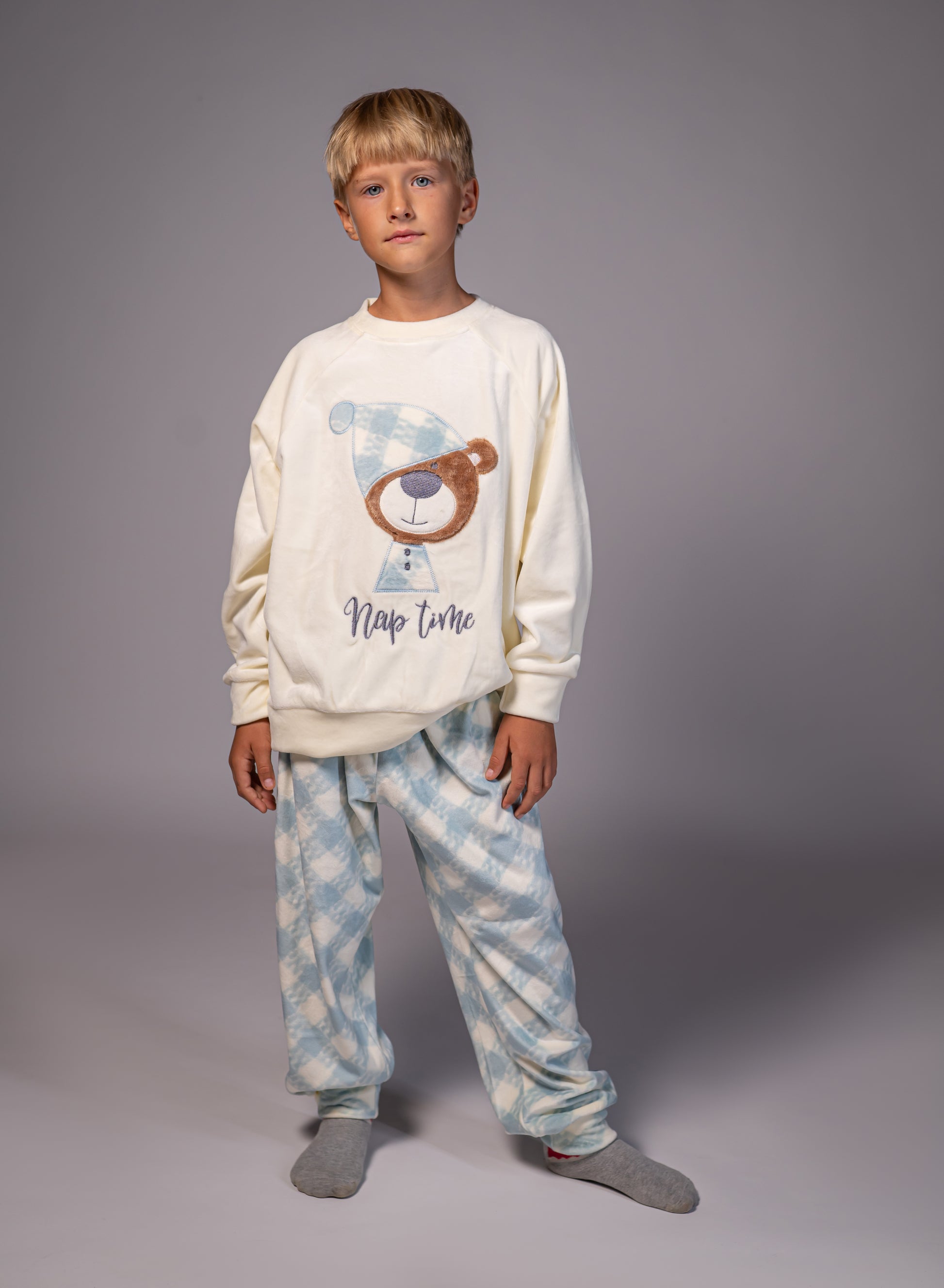 Snuggle up in style with our Brown Bears Set for kids, a warm and playful pajama outfit designed for ultimate comfort. This two-piece sleepwear includes a soft cream long-sleeve top featuring an adorable brown bear graphic, paired with matching pants in cozy, breathable fabric. Perfect for bedtime, lazy weekends, or family pajama nights, this set keeps kids comfortable while adding a fun touch with its cute bear design. A must-have for little animal lovers who enjoy cozy nights in.